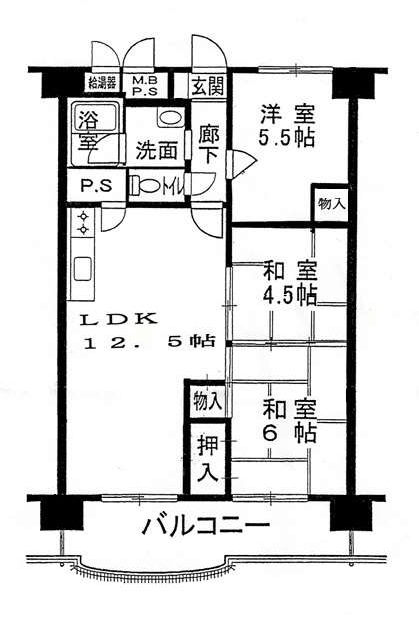 間取内容 洋室5.5畳 LDK12.5畳 和室4.5畳 和室6畳