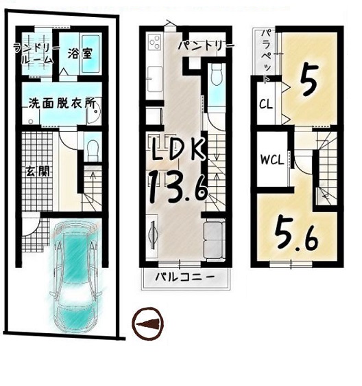 間取内容 2階LDK13.6畳 3階洋室5.6畳 3階洋室5畳