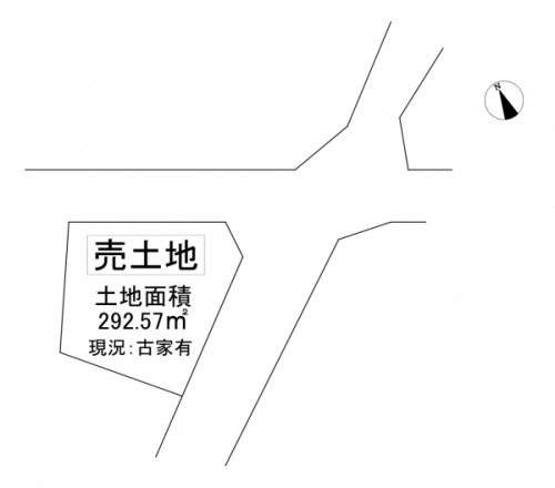 ※建築条件無し売土地(間取) ※現況:古家有(外観) ※角地(古家有)(周辺) ※角地(古家有)(周辺) 前道(周辺) 前道(周辺)