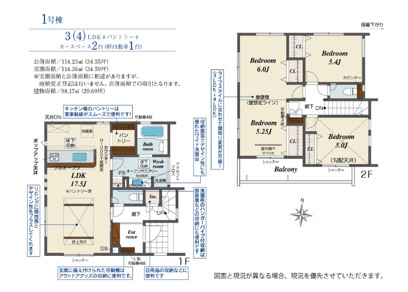 1階LDK17.5畳 2階洋室6畳 2階洋室5.4畳 2階洋室5.25畳 2階洋室5畳