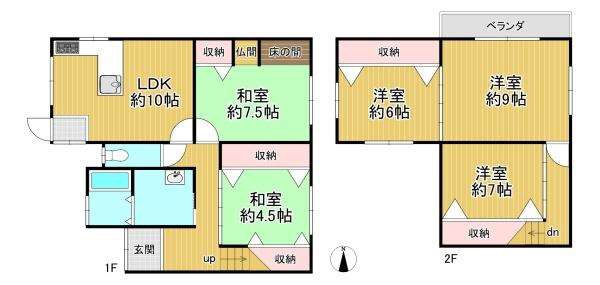 間取内容 1階LDK10畳 1階和室7.5畳 1階和室4.5畳 2階洋室7畳 2階和室9畳 2階洋室6畳