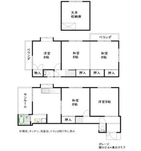 (間取) 間口2.6m×奥行7.7m(ガレージ)(外観)