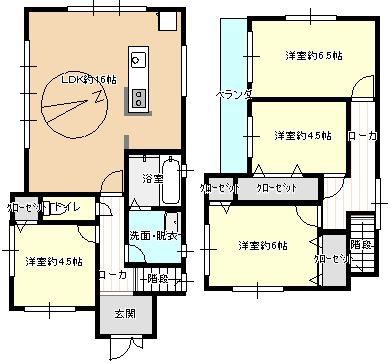 間取内容 1階LDK16畳 1階洋室4.5畳 2階洋室6.5畳 2階洋室4.5畳 2階洋室6畳