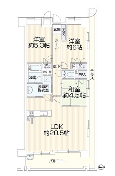 間取内容 洋室6畳 洋室5.3畳 LDK20.5畳 和室4.5畳