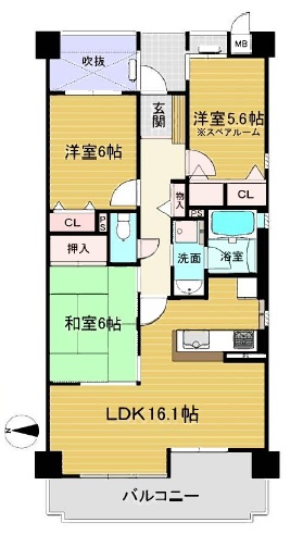 | 間取内容 | 洋室6畳 洋室5.6畳 和室6畳 LDK16.1畳 |