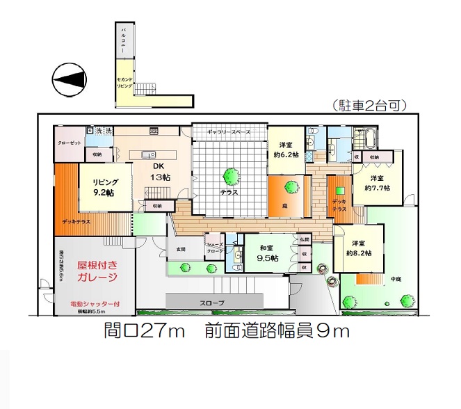| 間取内容 | 1階L9.2畳 1階DK13畳 1階和室9.5畳 1階洋室6.2畳 1階洋室7.7畳 1階洋室8.2畳 |
