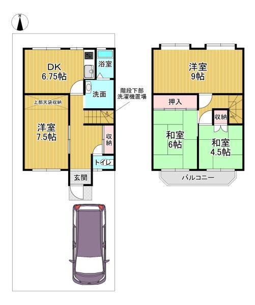 | 間取内容 | 1階DK6.75畳 1階洋室7.5畳 2階洋室9畳 2階和室6畳 2階和室4.5畳 |