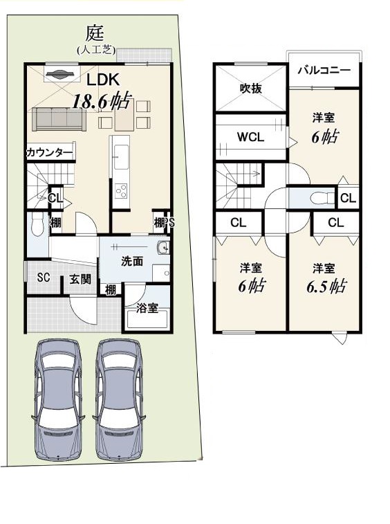 | 間取内容 | 1階LDK18.6畳 2階洋室6畳 2階洋室6畳 2階洋室6.5畳 |
