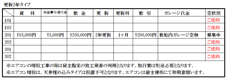 | 間取内容 | 2階その他約20.38畳 (201号室)※床は全室タイルカーペットの仕様となります |